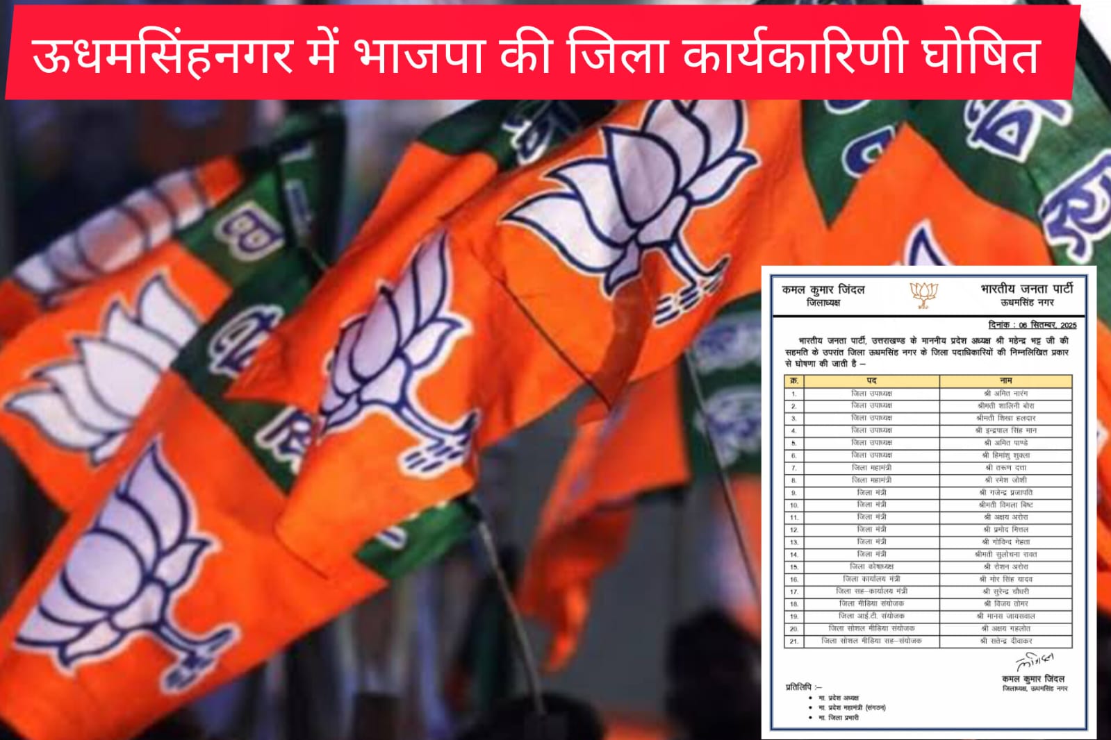 ऊधमसिंहनगर में भाजपा की जिला कार्यकारिणी घोषित।देखिए किस-किस को मिली जिम्मेदारी,किसके लगी लाटरी,किसके खतरे पर
