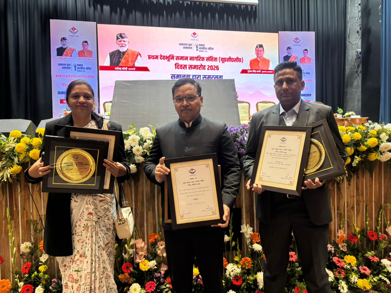 कार्यक्रम के दौरान मुख्यमंत्री द्वारा जनपद चम्पावत के दो उपनिबंधकों रीता बिष्ट एवं दीपक चन्द्र को भी समान नागरिक संहिता के अंतर्गत उत्कृष्ट कार्य निष्पादन हेतु व्यक्तिगत रूप से सम्मानित किया गया।