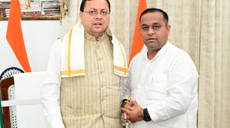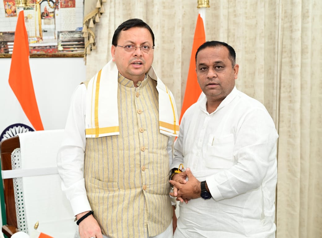 चुघ ने मुख्यमंत्री धामी से की शिष्टाचार मुलाकात।क्षेत्र की सड़कों और जलभराव की समस्यायों से कराया अवगत
