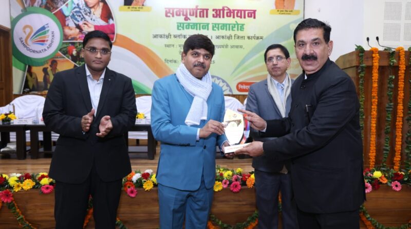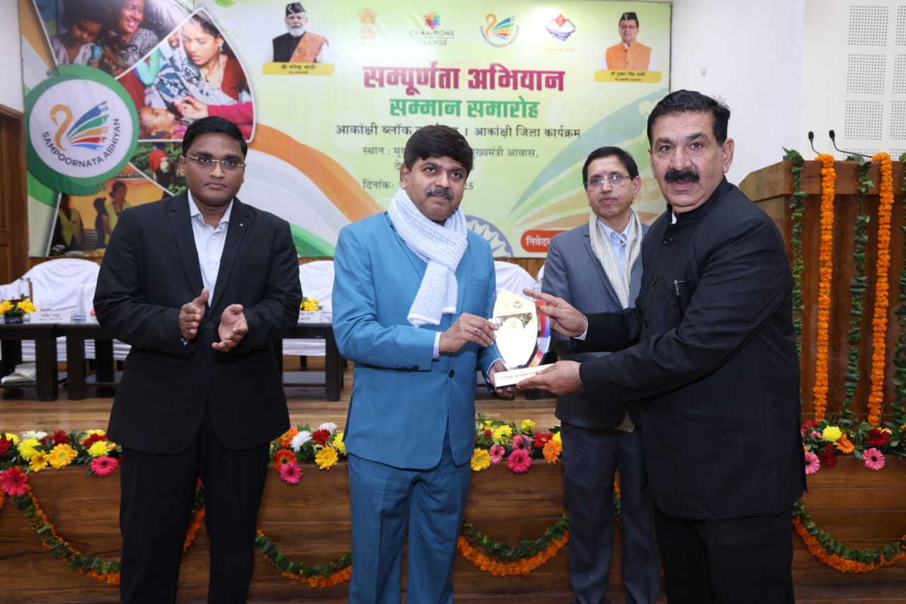 रुद्रपुर(खबर धमाका)।– उत्तराखण्ड सरकार के नियोजन विभाग द्वारा संचालित आकांक्षी जनपद/विकासखण्ड कार्यक्रम के अंतर्गत जुलाई 2024 से सितम्बर 2024 की अवधि में निर्धारित 06 प्रमुख संकेतांकों पर उत्कृष्ट प्रदर्शन करने वाले जनपदों एवं विभागों को सम्मानित करने के उद्देश्य से राज्य स्तरीय ‘सम्पूर्णता अभियान सम्मान समारोह’ का आयोजन विगत शुक्रवार को मुख्यमंत्री कैम्प कार्यालय स्थित मुख्य सेवक सदन, देहरादून में किया गया।