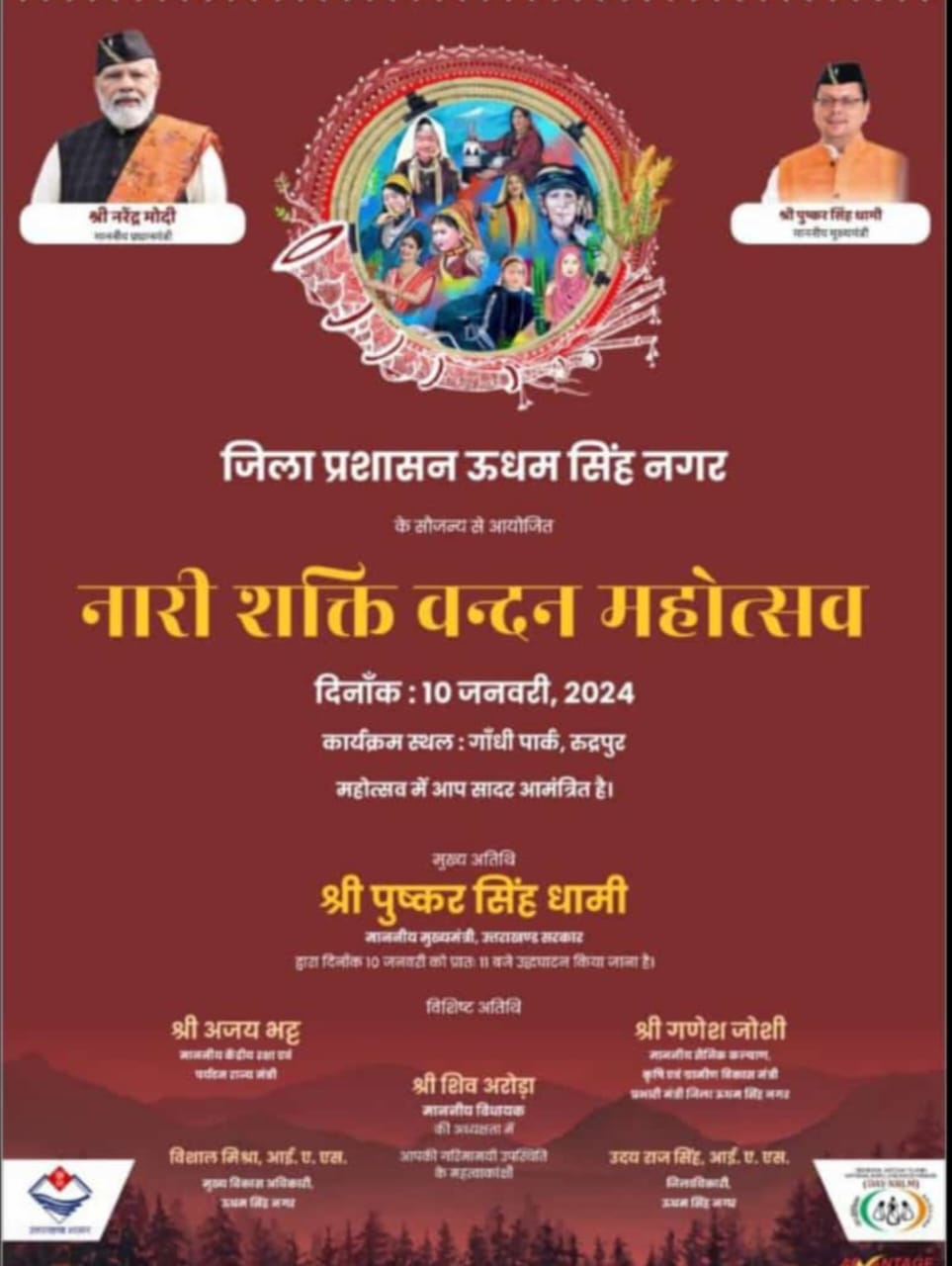 जी हम बात कर रहे हैं। रुद्रपुर में बुधवार को हुई नारी वंदना महोत्सव की। की दिन से चल रही तैयारी के बीच बुधवार को कार्यक्रम का आयोजन किया गया। यूं तो कार्यक्रम स्थल गांधी पार्क था, लेकिन भीड़ ने सारे रिकॉर्ड तोड दिए। गांधी पार्क तो फुल था ही,पूरे शहर, नैनीताल हाईवे, काशीपुर वाईपास रोड हर जगह नारी शक्ति का ही हुजूम नजर आ रहा था, मुख्य बाजार में जगह जगह हो रहे सांस्कृतिक कार्यक्रम सुबह से ही शुरू हो चुके थे,तो सीएम पुष्कर सिंह धामी के रोड शो में जमकर पुष्प वर्षा हुई। भीड़ इतनी थी कि पुलिस के भी पसीने छूट गए।यानी भीड़ ने कड़ाके की ठंड में गर्मी के एहसास में बदल दिया था। गांधी पार्क में बने मंच पर सीएम पुष्कर सिंह समेत अन्य वक्त भी इसे ऐतिहासिक कार्यक्रम बताने में पीछे नहीं हटे। सीएम धामी ने कहा जिस प्रकार नारी शक्ति उमंडी है, उससे वह गदगद हैं।