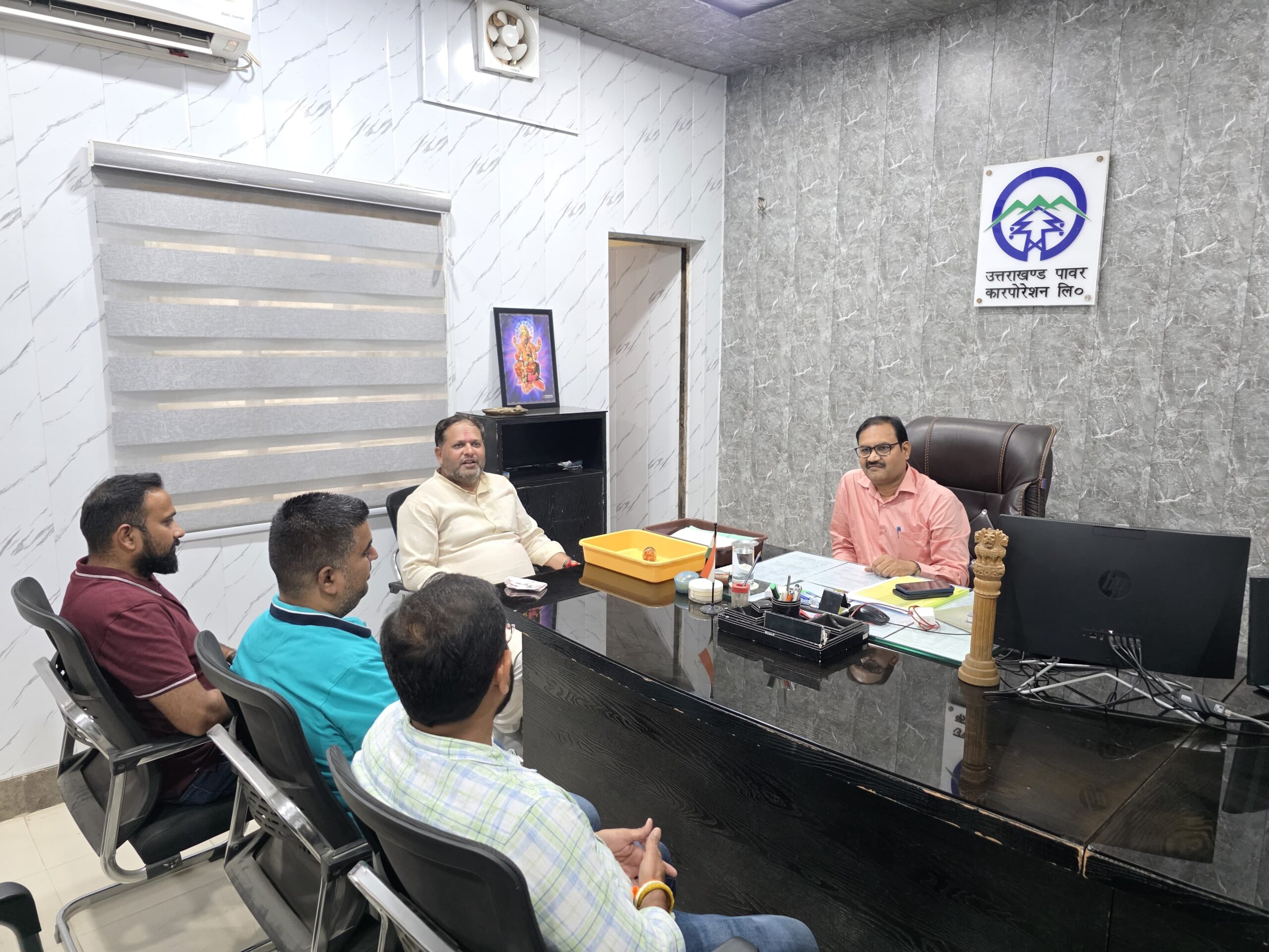रुद्रपुर(खबर धमाका)। रुद्रपुर नगर निगम महापौर विकास शर्मा ने रुद्रपुर खंड कार्यालय प्रथम भदईपुरा स्थित विद्युत विभाग कार्यालय में नए अधिशासी अभियंता राजीव चक्रवर्ती, एस.डी.ओ. अंशुल मदान एवं जे.ई. पारुल चौधरी के साथ बैठक की गई।