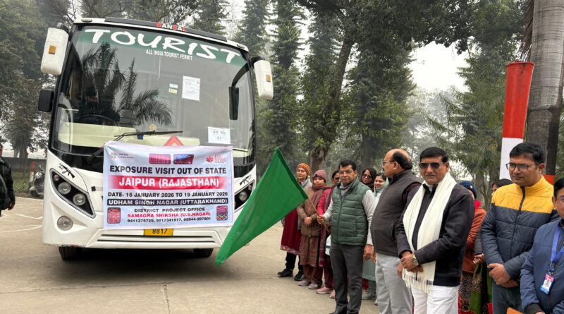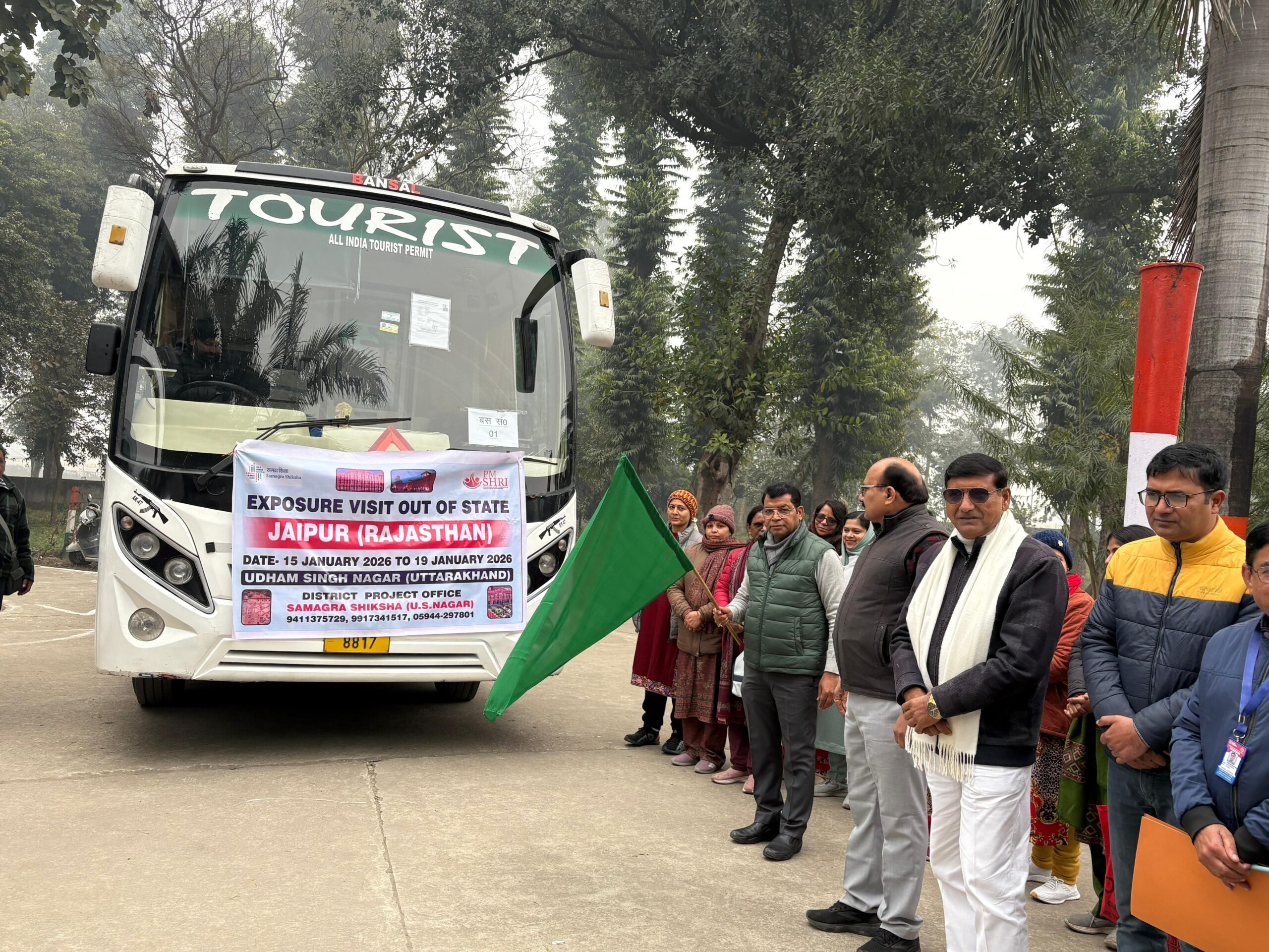 रुद्रपुर(खबर धमाका)। भारत सरकार द्वारा माध्यमिक विद्यालय पीएम श्री राजकीय इंटर कॉलेज से वर्ष 2025-26 मे 8वीं व 10वीं कक्षा मे (जो वर्तमान मे 9वीं व 11वीं कक्षा मे है ) ऐसे टॉपर रहकर उत्कृष्ट प्रदर्शन करने वाले 141 मेधावी छात्र-छात्राओं जिसमें 75 लड़के 66 लड़कियां जिले भर के 30 सरकारी इंटर कॉलेज से अंतरराज्यीय भ्रमण कार्यक्रम के अन्तर्गत 5 दिवसीय जयपुर भ्रमण हेतु 3 बसों को एन झा कॉलेज, रुद्रपुर से विधायक शिव अरोरा ने हरी झंडी दिखाकर रवाना किया।