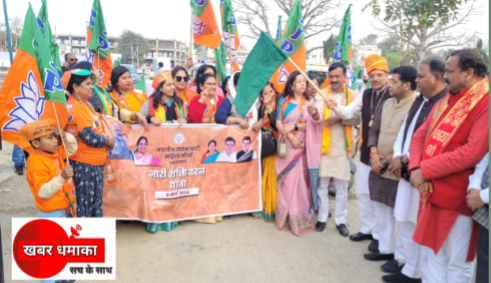 रुद्रपुर(खबर धमाका)।भारतीय जनता पार्टी महिला मोर्चा ने मंगलवार को शहर में नारी शक्ति वंदन पद यात्रा निकाली।केंद्रीय रक्षा राज्यमंत्री अजय भट्ट और विधायक शिव अरोरा ने हरी झंडी दिखाकर पद यात्रा को रवाना किया।