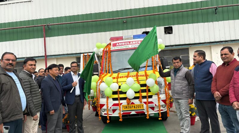 रुद्रपुर मेडिकल कॉलेज क़ो मिली पहली ट्रामा लाइफ स्पोर्ट सी टाइप एम्बुलेंस।विधायक शिव अरोरा ने दिखाई हरी झंडी,बोले स्वास्थ सुविधा क्षेत्र मे एम्बुलेंस की भूमिका महत्वपूर्ण।ग्रीन पैनल कंपनी ने सीएसआर फंड से दी एम्बुलेंस