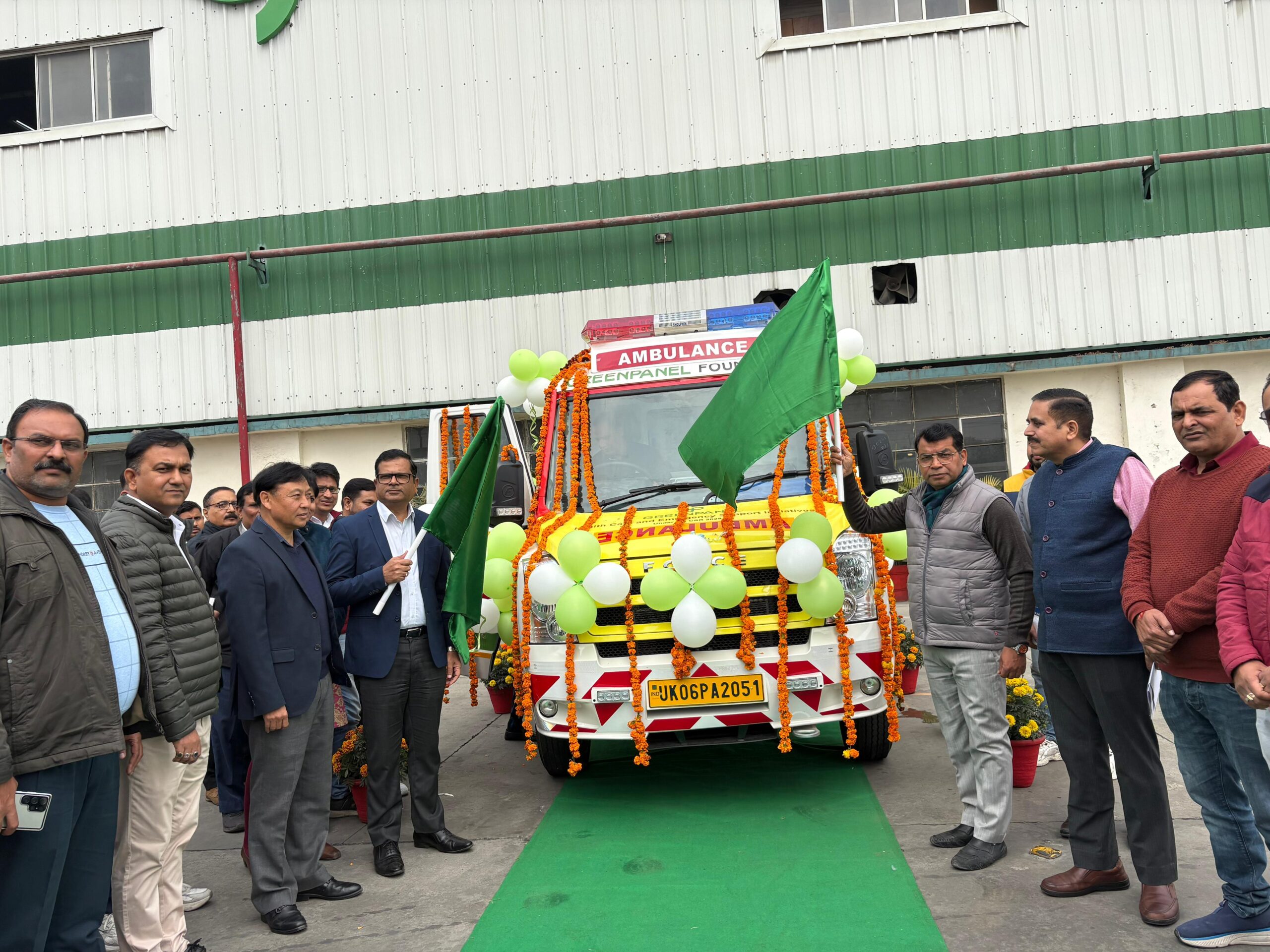 रुद्रपुर मेडिकल कॉलेज क़ो मिली पहली ट्रामा लाइफ स्पोर्ट सी टाइप एम्बुलेंस।विधायक शिव अरोरा ने दिखाई हरी झंडी,बोले स्वास्थ सुविधा क्षेत्र मे एम्बुलेंस की भूमिका महत्वपूर्ण।ग्रीन पैनल कंपनी ने सीएसआर फंड से दी एम्बुलेंस