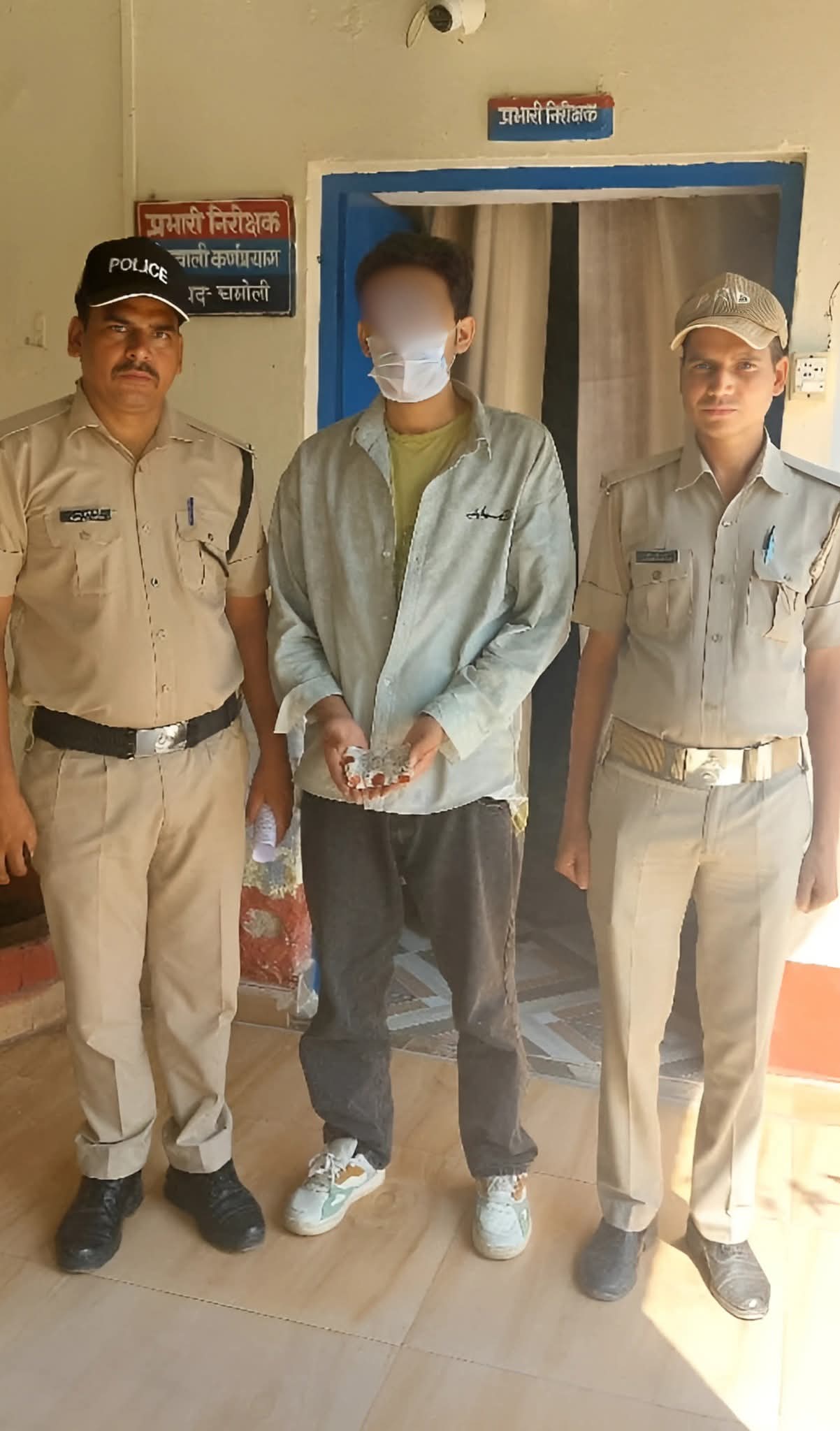 कोतवाली कर्णप्रयाग के प्रभारी निरीक्षक श्री राकेश चंद्र भट्ट के निर्देशन एवं व0उ0नि0 संजय सिंह नेगी के नेतृत्व में गठित पुलिस टीम द्वारा कमेडा से गौचर मोटर मार्ग पर संदिग्ध व्यक्तियों की चेकिंग की जा रही थी। इस दौरान भगतराम विद्या मंदिर इंटर कॉलेज के पास एक व्यक्ति संदिग्ध अवस्था में दिखाई दिया, जो पुलिस को देखकर अचानक भागने लगा। शक होने पर पुलिस टीम ने त्वरित कार्यवाही करते हुए उसे घेराबंदी कर पकड़ लिया।