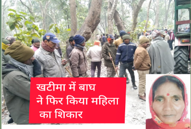 खटीमा सुरई रेंज में बाघ ने फिर किया महिला का शिकार।शौच के लिए घर से 50 मीटर दूर गई थी महिला। वन कर्मियों ने चार राउंड फायर कर शव को बाघ से कराया मुक्त