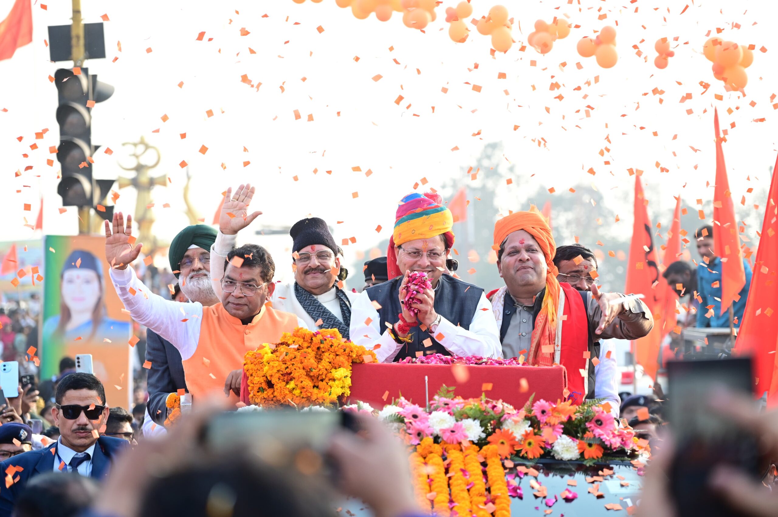 इससे पूर्व माननीय मुख्यमंत्री श्री धामी ने त्रिशूल चौक का लोकार्पण किया व त्रिशूल चौक से सरस मेला कार्यक्रम स्थल गांधी पार्क तक आयोजित शिव बारात में प्रतिभाग किया।शिव बारात में माननीय मुख्यमंत्री का विभिन्न संगठनों व जनता द्वारा फूलमाला,पुष्पवर्षा कर भव्य स्वागत किया।